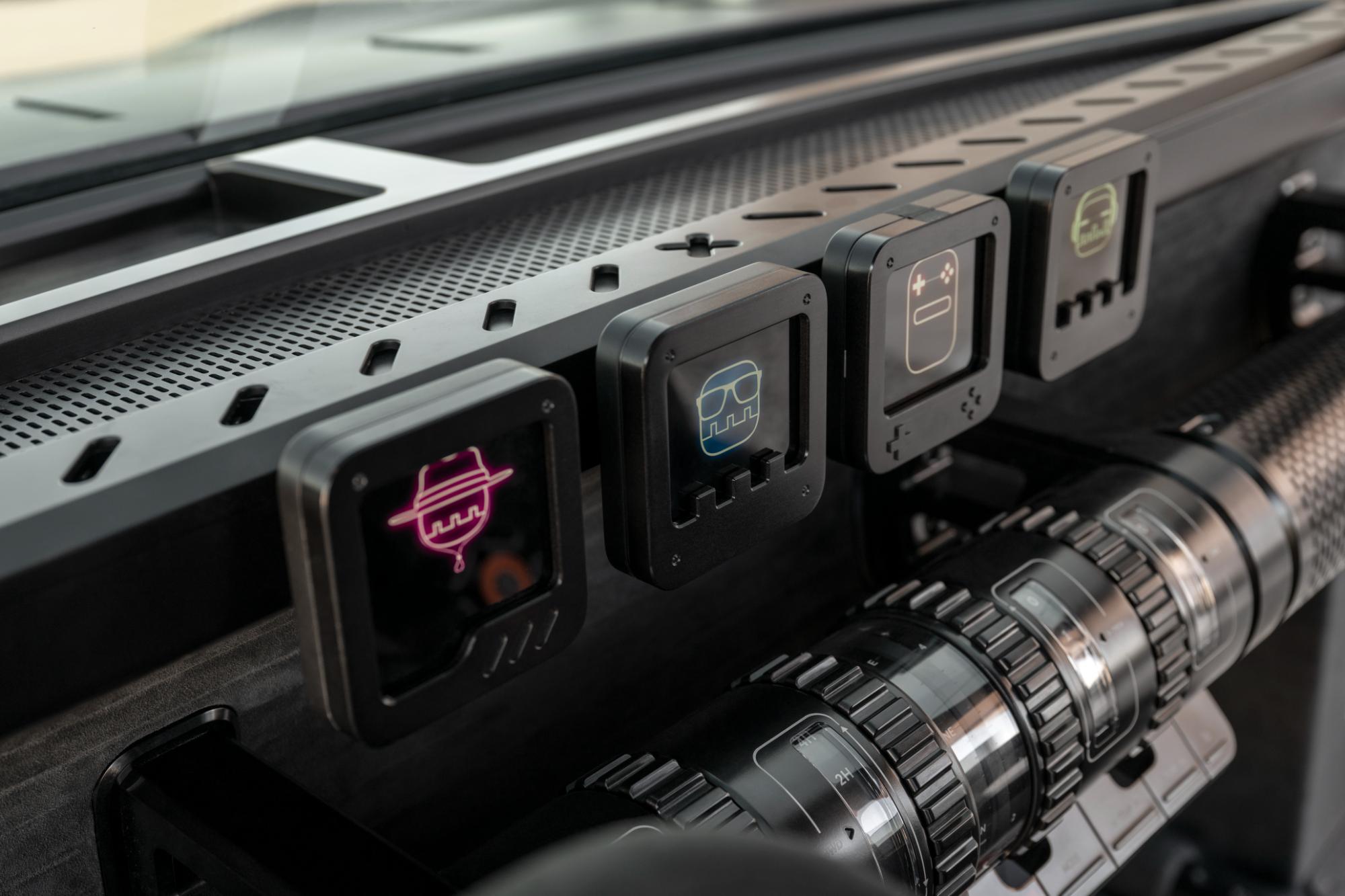 În partea centrală a bordului se află patru display-uri detașabile. De asemenea, informațiile principale sunt proiectate pe toată lățimea parbrizului prin intermediul unui head-up display avansat. Mai există un ecran, care este integrat în volanul cu formă aproape pătrățoasă.