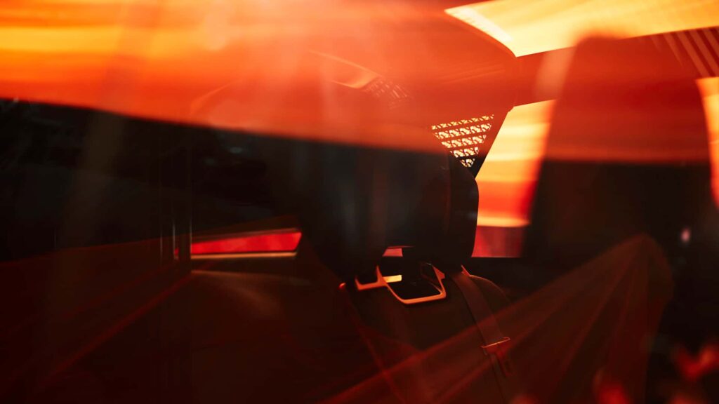 Un detaliu deosebit este plafonul cu design dual, jumătate panoramic și transparent, jumătate opac – o soluție estetică rar întâlnită, care oferă un echilibru între lumină naturală și intimitate. În partea din spate, stopurile amplasate pe două niveluri reflectă simetria față-spate a designului, consolidând coerența vizuală a conceptului.