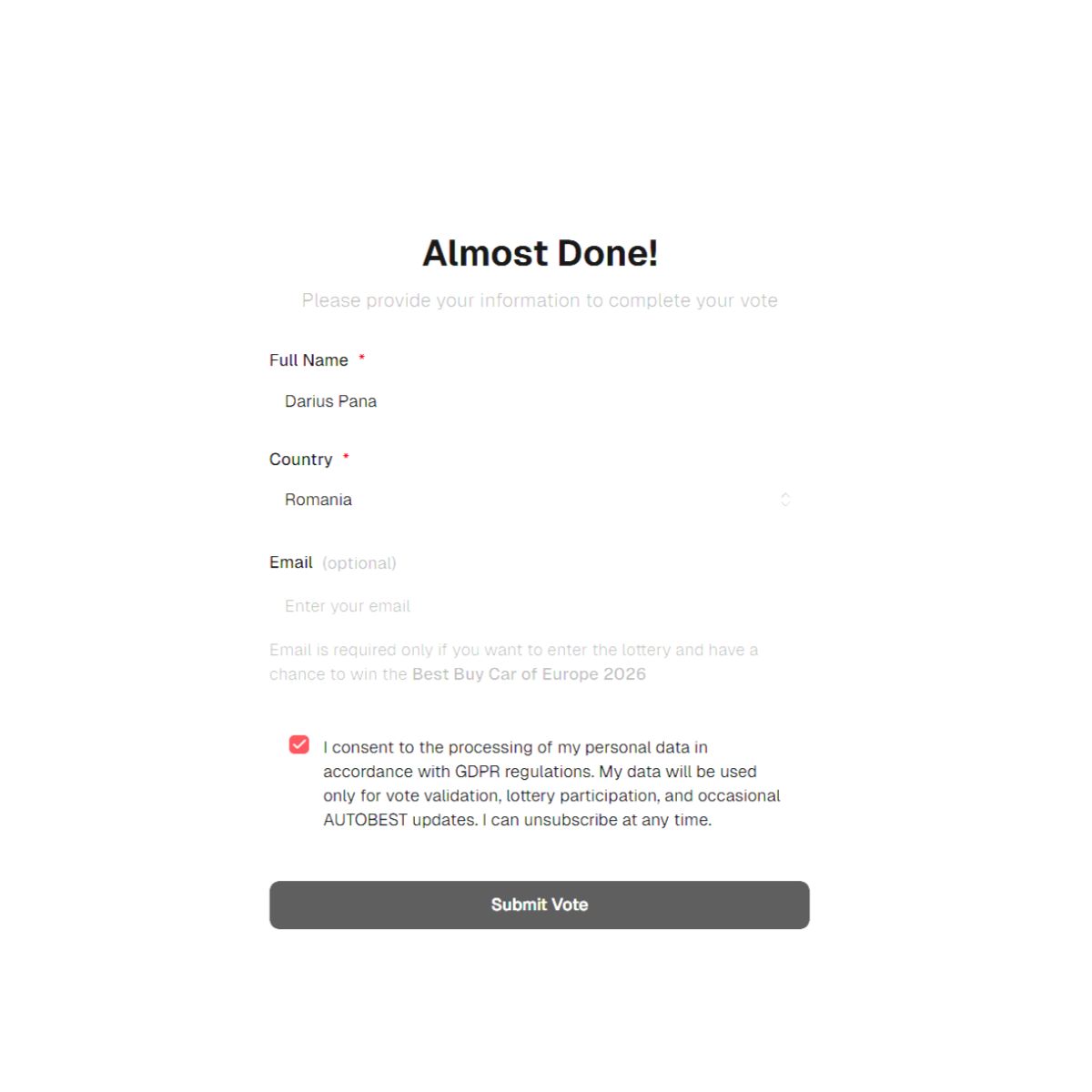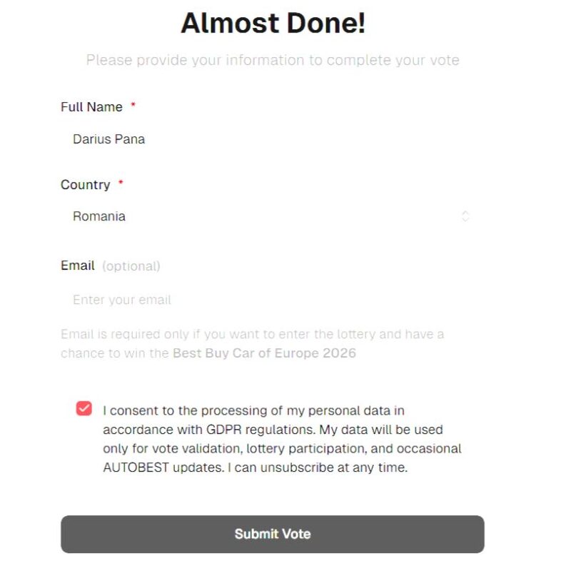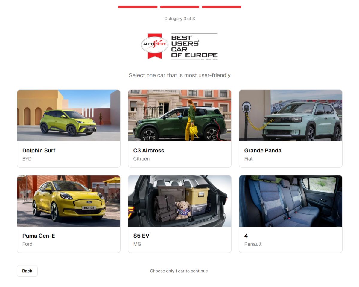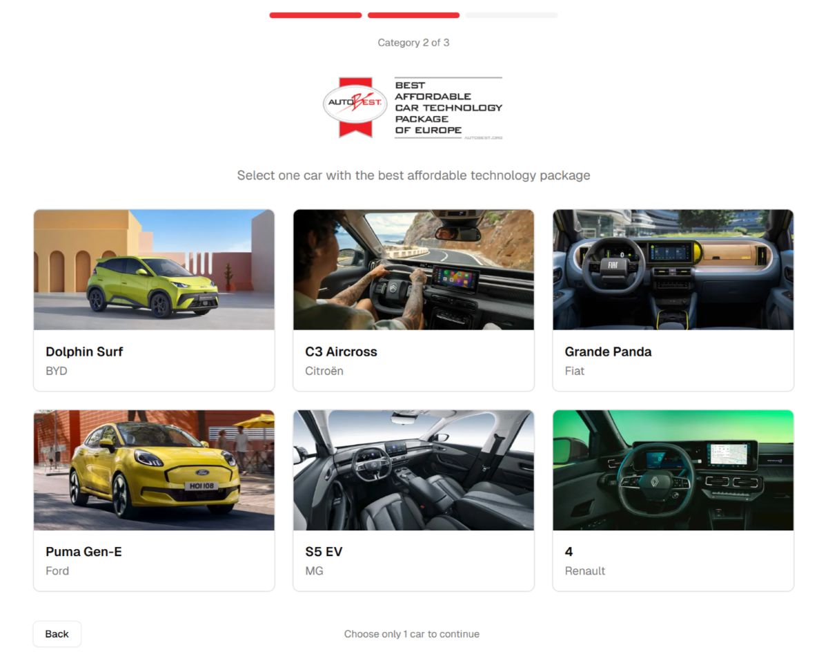 Începând cu mijlocul lunii ianuarie 2026, utilizatorii din întreaga Europă sunt invitați să „testeze și să voteze” modelele finaliste, votul fiind deschis online până la Gran Finale, când rezultatele vor fi anunțate live în cadrul AUTOBEST Conquest Show, pe 28 martie 2026.