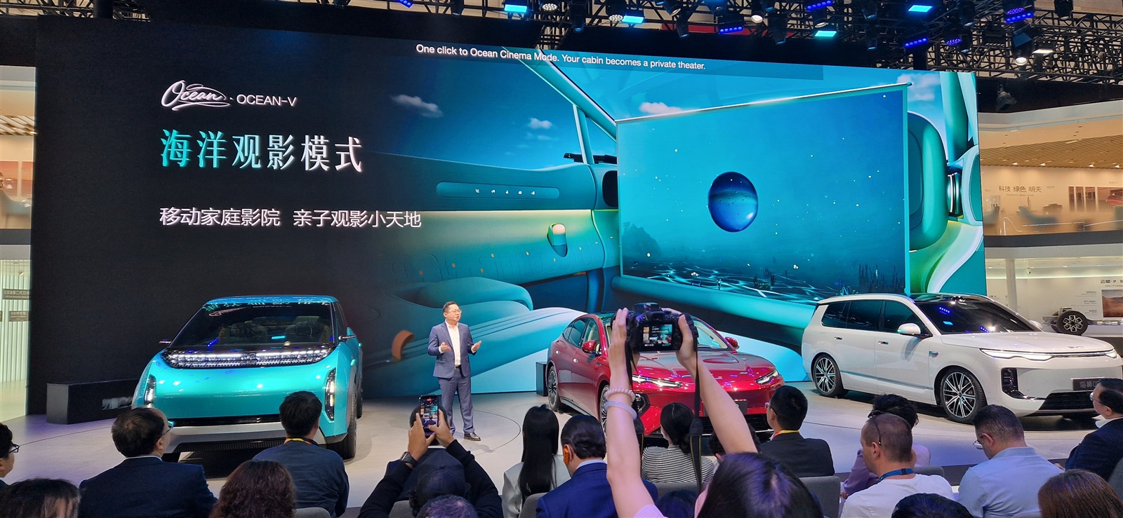 Însă cea mai interesantă apariție BYD la Beijing este conceptul OCEAN-V, o viziune radicală asupra viitorului mobilității. Este un „un hub mobil pentru viața de familie” care depășește limitele conceptuale de caroserii clasice, devenind o fuziune „a la BYD” între sedan, SUV sau monovolum. Folosind același „OCEAN Aesthetics”, îmbină armonios fluiditatea și căldura inspirate de ocean cu un caracter avangardist, specific mobilității viitorului. În configurația conceptului prezentat se oferă libertatea de a crea multiple tipuri de spațiu interior, axate pe distracție, interacțiune și funcționalitate. Acestea includ Driving mode, cu volan, dar fără butoane fizice, pentru o experiență futuristă, Cinema mode, printr-o simplă apăsare de buton, scaunele se ajustează, volanul se retrage, bordul se rabatează, iar un ecran se ridică, transformând OCEAN-V într-o sală de cinema privată.