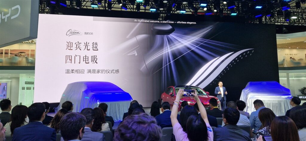 După actualizarea recentă a întregii „serii 567” – SEALION 05, SEAL 06, SEALION 06 și SEAL 07 – gama BYD OCEAN aduce la Beijing încă două lansări importante de modele de serie: SEAL 08 și SEALION 08. Descrise drept „modele de top duale”, aceste două autovehicule reunesc cele mai avansate tehnologii ale BYD. Prima impresie este cea a unei calități superioare, cu un design inspirat – potrivit producătorului – de orizont și fără elemente inutile; interiorul modelului SEAL 08 este comparabil cu un apartament de lux cu vedere la ocean: luminos, deschis și spațios. Un exemplu al atenției uimitoare acordate detaliilor îl constituie intarsiile luminoase din sidef, o caracteristică rezervată de obicei mașinilor de lux sau celor mai rafinate bijuterii și ceasuri.