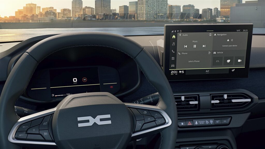 Noile modele pot fi echipate cu un nou sistem multimedia cu ecran central de 10” și navigație conectată. Instrumentarul digital de 7” beneficiază de un nou design al interfeței. Desigur, nu lipsește YouClip. Pentru cei care nu sunt familiarizați, aceste puncte de fixare pot găzdui diverse accesorii precum: suport pentru tabletă, buzunar de depozitare, suport pentru smartphone, umeraș etc. În plus, două accesorii noi compatibile cu sistemul YouClip sunt disponibile în rețeaua Dacia: un toc pentru ochelari și o geantă pentru cumpărături.