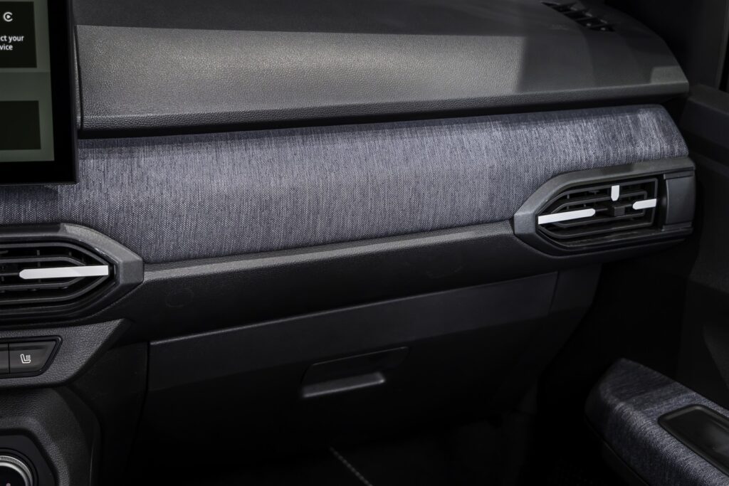 Ca un element de legătură între designul exterior și cel interior, noile aeratoare preiau aspectul unui „T” inversat, similar semnăturii luminoase. Bordul și panourile ușilor față sunt îmbrăcate în materiale textile albastre pe versiunea Expression și denim albastru pe versiunea Journey. Sandero, Sandero Stepway, Jogger și Logan beneficiază de materiale textile noi pentru scaune, bord și panouri de uși. Versiunile Essential și Expression primesc un material textil negru pe Jogger, Sandero și Logan, și albastru deschis pe Sandero Stepway.