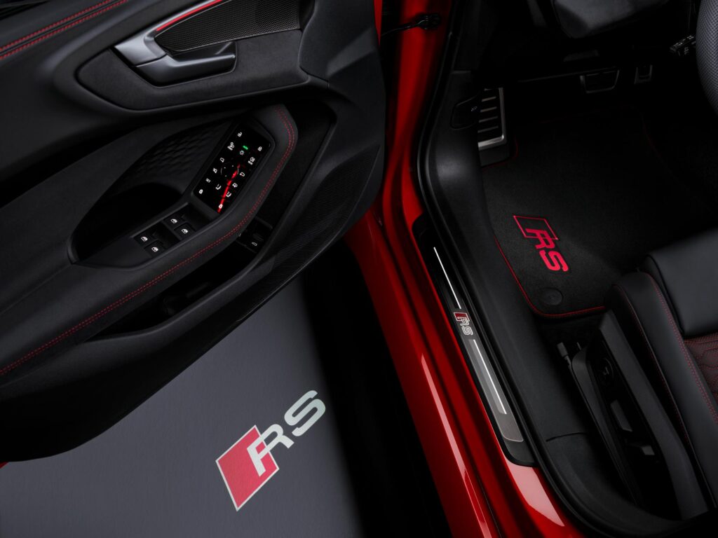 Ca elemente estetice, se remarcă aripile evazate, difuzorul posterior aerodinamic cu aripioare verticale și stopurile OLED de generația a doua. Sistemul de evacuare sport RS a fost reproiectat, iar terminațiile duble ovale au un finisaj mat conferă un aspect cu adevărat sportiv. Majoritatea detaliilor exterioare sunt finisate în negru lucios. De asemenea, Audi oferă și un pachet opțional din fibră de carbon. Paleta de culori exterioare include nuanțe precum Ascari Blue, Mythos Black, Progressive Red sau Goodwood Green.
