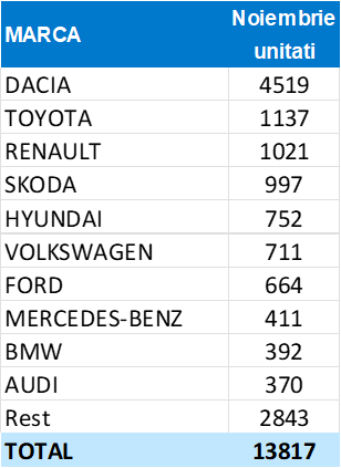 APIA (Asociația Producătorilor și Importatorilor de Automobile) aduce în atenție primele informații oficiale referitoare la înmatriculările de autovehicule în România în luna noiembrie.