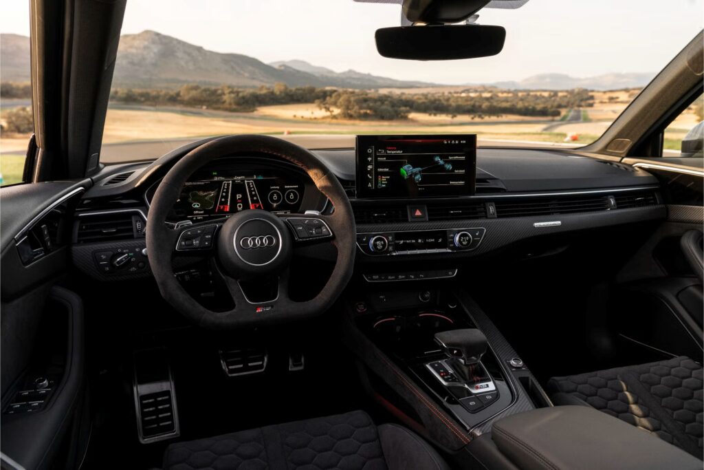 În habitaclu, divizia Audi Sport va integra elemente dedicate performanței. În pachetul cu noutăți vor fi incluse un volan RS restilizat îmbrăcat în microfibră Dinamica, inserții din fibră de carbon și multiple logo-uri RS, menite să sublinieze caracterul sportiv al modelului. Tehnologia digitală și sistemele avansate de asistență vor completa pachetul, în linie cu standardele actuale din segmentul premium.