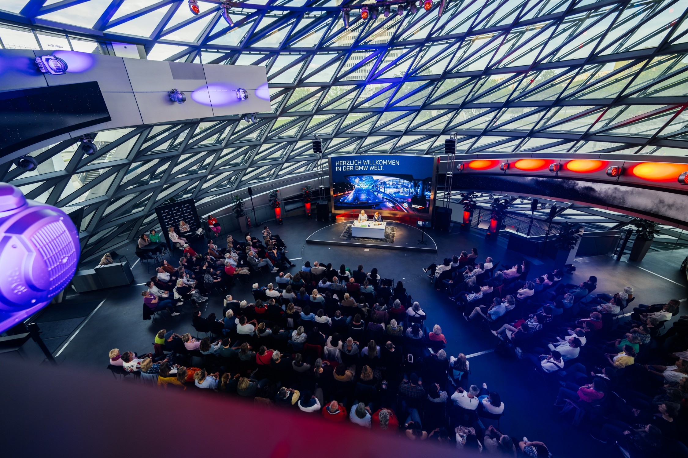 BMW Welt găzduiește anual aproximativ 400 de evenimente, inclusiv Premiile Bavareze pentru Sport și Blauer Panther TV & Streaming Award. Auditoriumul său are a doua cea mai mare scenă din München, după opera orașului, iar spațiile sunt disponibile și pentru evenimente private.