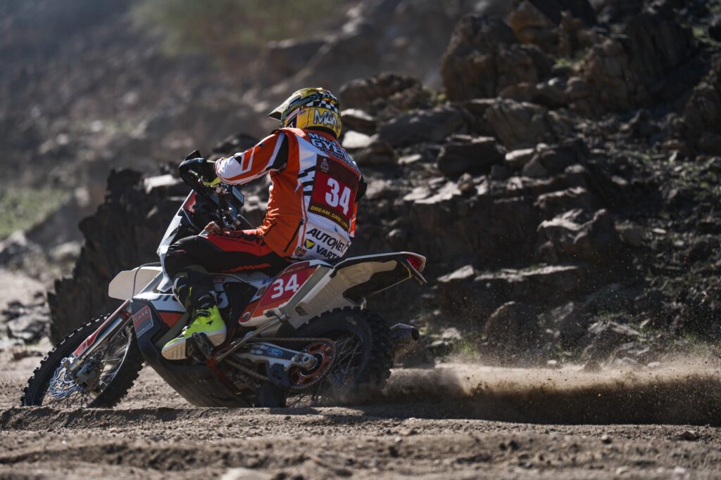 Pe 3 ianuarie a avut loc prologul de 22 de kilometri și startul festiv, care au marcat debutul întrecerii. Raiderul român a înregistrat cel mai bun timp în categoria piloților fără asistență tehnică, 12 min 23 sec, însă a încheiat prologul cu o jantă față îndoită. Având la dispoziție doar două seturi de jante pentru categoria Original by Motul, Mani va trebui să-și gestioneze cu atenție resursele în următoarele 13 etape, relatează Sport.ro.