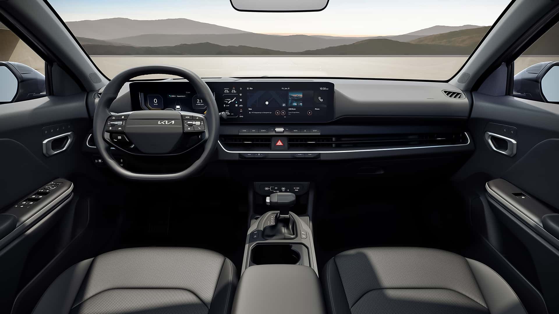 Habitaclul reflectă, la rândul său, filosofia modernă a constructorului coreean. Planșa de bord este dominată de un ansamblu de ecrane care include un display de 12,3 inch pentru instrumentarul digital, un ecran central de infotainment de aceeași dimensiune și un al treilea afișaj, de 5,3 inch, dedicat comenzilor pentru climatizare. Acesta este poziționat între cele două ecrane principale.