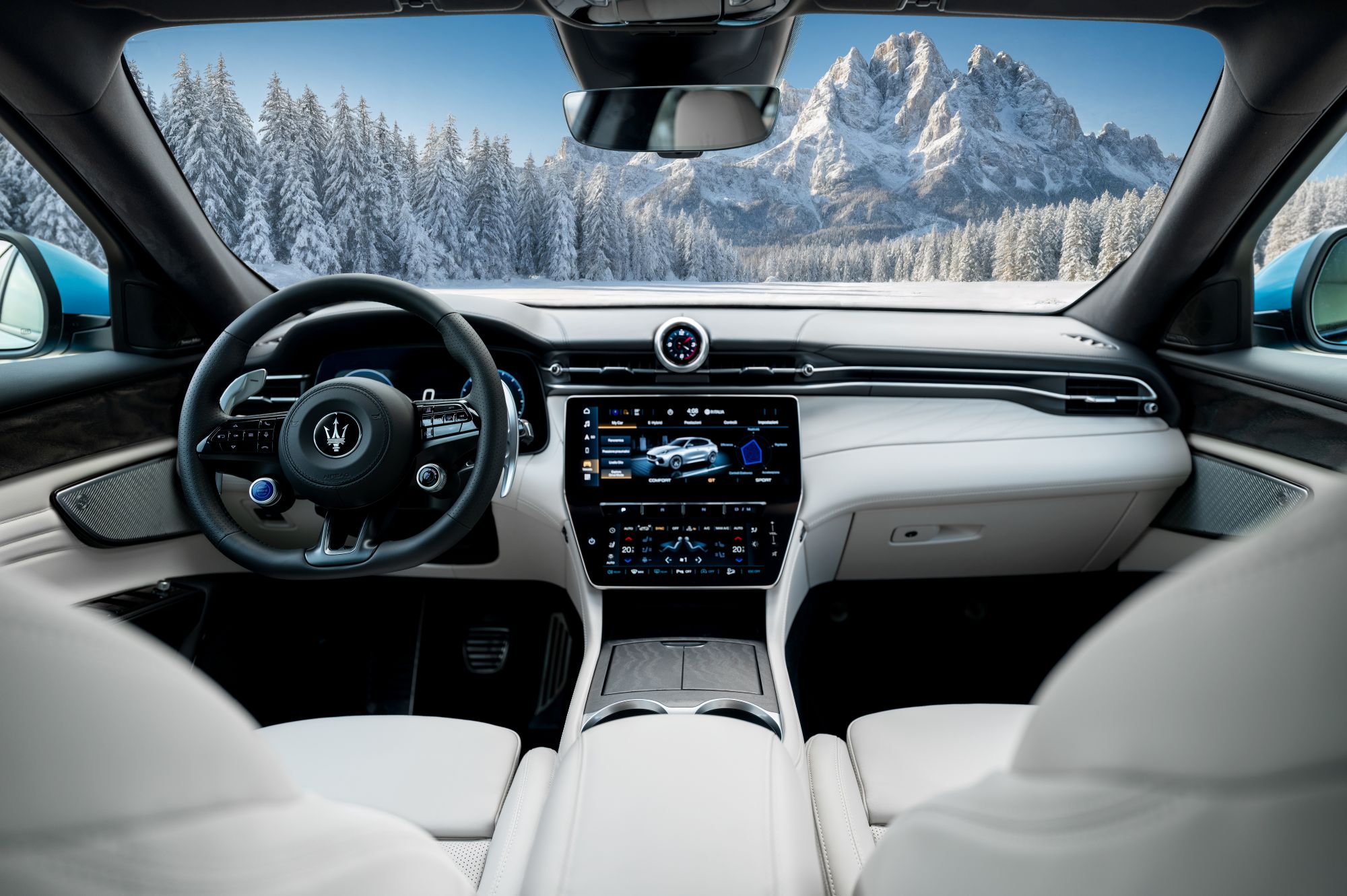 Elementul central al acestei ediții este culoarea Azzurro Aureo, parte a programului de personalizare Fuoriserie, evidențiată printr-un badge dedicat amplasat pe aripă. Nuanța pornește de la albastrul tradițional Maserati și evoluează spre un ton mai deschis, cu reflexii reci și accente aurii subtile, inspirate de lumina și relieful zonelor alpine.