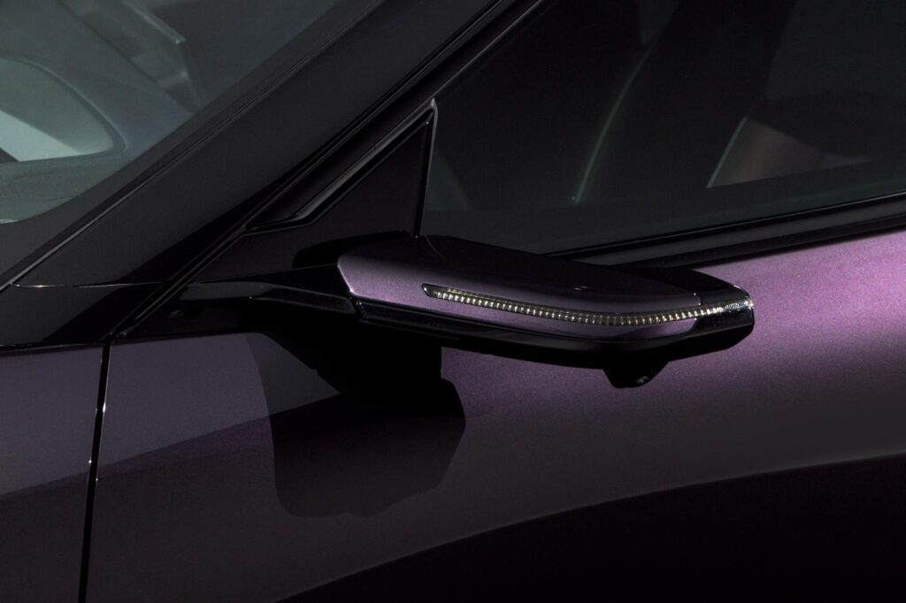 O noutate absolută o reprezintă oglinzile digitale, cu un design subțire, inspirat de forma unor aripi. În partea din spate, stopurile LED subțiri creează o semnătură luminoasă modernă și ușor recognoscibilă. Paleta cromatică include șapte nuanțe: Nightfall Violet, Air Stream Blue, Crystal White Pearl, Jet Black, Aero Grey, Machine Grey și Soul Crystal Red. Toate culorile, cu excepția negrului, sunt asociate cu un plafon vopsit în negru contrastant.
