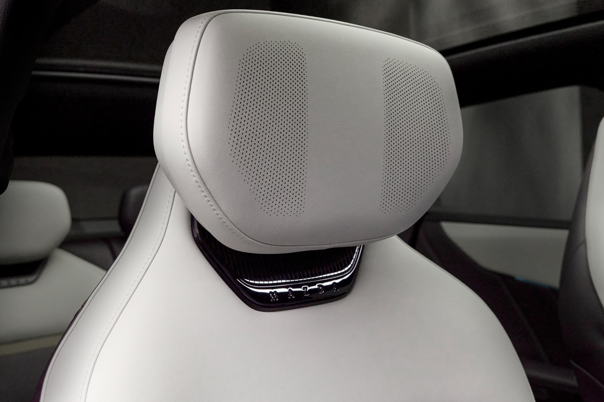 Un detaliu distinctiv este grila frontală cu ramă parțial iluminată, care face legătura între cele două faruri LED. Logo-ul Mazda este și el iluminat, iar bara de protecție față a fost concepută pentru a optimiza aerodinamica. Pentru un aspect mai robust, SUV-ul primește protecții din plastic negru lucios în zona aripilor și a pragurilor.