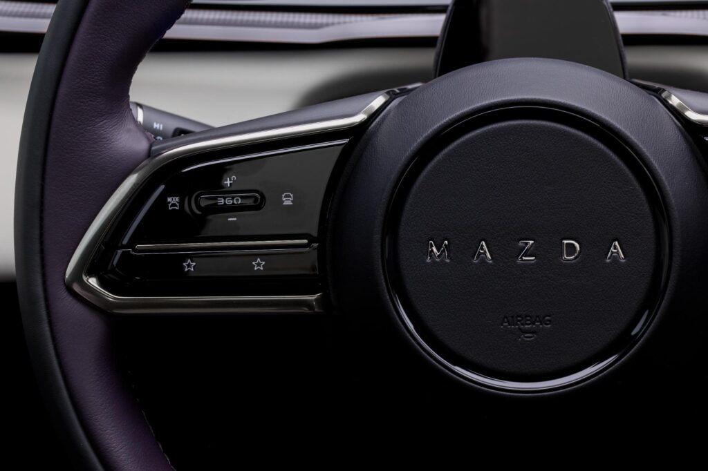 CX-6e dispune de trei moduri de rulare – Normal, Sport și Individual – și de un pachet extins de sisteme de asistență. Acesta include monitorizarea unghiului mort, asistență la menținerea benzii și un asistent inteligent pentru limita de viteză.