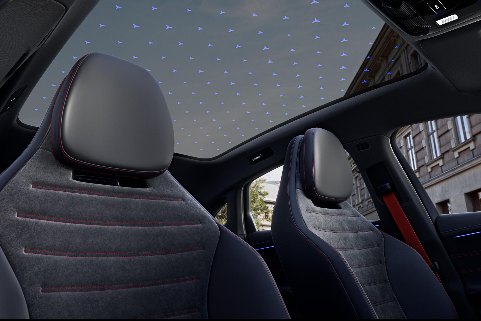 Scaunele ergonomice oferă reglaje electrice, încălzire, ventilație și funcție de masaj. Materialele folosite includ piele premium, inserții din lemn sau fibră de carbon, în timp ce plafonul panoramic Sky Control permite ajustarea opacității în câteva milisecunde.