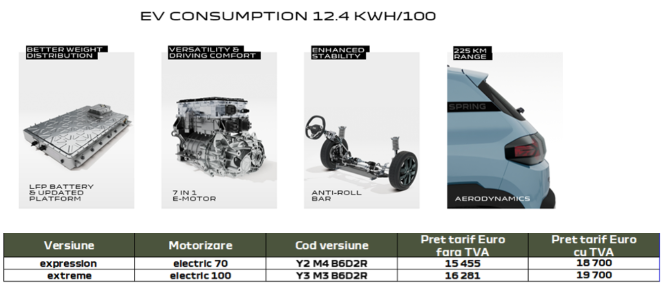 Producătorul de automobile Dacia continuă să-și extindă gama, oferind clienților din România noi opțiuni pentru modelul electric Spring.