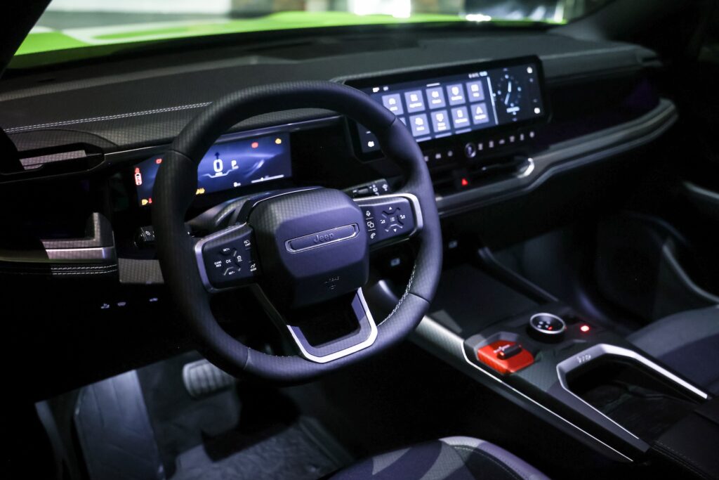 La interior, noul Jeep Compass face un salt important în direcția digitalizării. Instrumentarul de bord este acum complet digital, cu un ecran de 10,25 inch, iar sistemul de infotainment este controlat printr-un display de dimensiuni generoase, de 16 inch. De asemenea, crossover-ul este echipat cu un head-up display.
