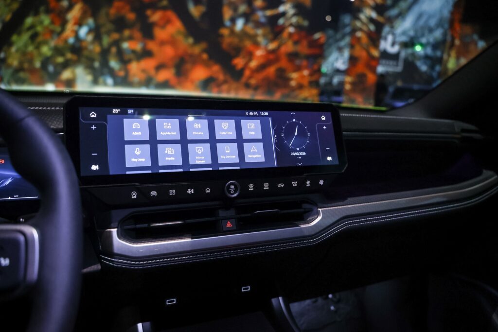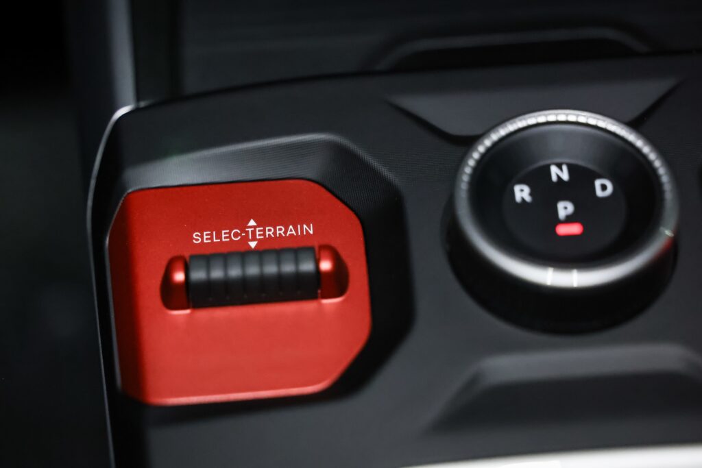 Arhitectura interioară pune accent pe funcționalitate și ergonomie, integrând o comandă rotativă intuitivă pentru transmisie, un buton dedicat frânei de parcare electronice și selectorul Selec-Terrain® cu finisaj cauciucat, poziționat la îndemână pentru acces rapid și operare facilă chiar și în condiții de rulare solicitante. În plus, SUV-ul vine cu un set de sisteme avansate de asistență, inclusiv conducere autonomă de nivel 2, cruise-control adaptiv și predictiv, schimbare semi-automată a benzilor. Varianta 100% electrică este echipată cu funcția One Pedal Drive.