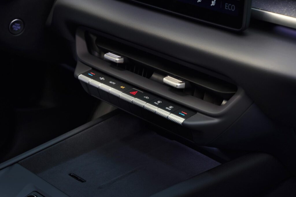 Sub aeratoarele centrale se regăsesc comenzi clasice pentru climatizare și avarii. Astfel, dispare controlul prin glisare tactilă. Sistemul multimedia include un ecran central de 12,9 inch și un instrumentar digital de 10,25 inch. Interfața grafică primește un stil inspirat din designul retro.
