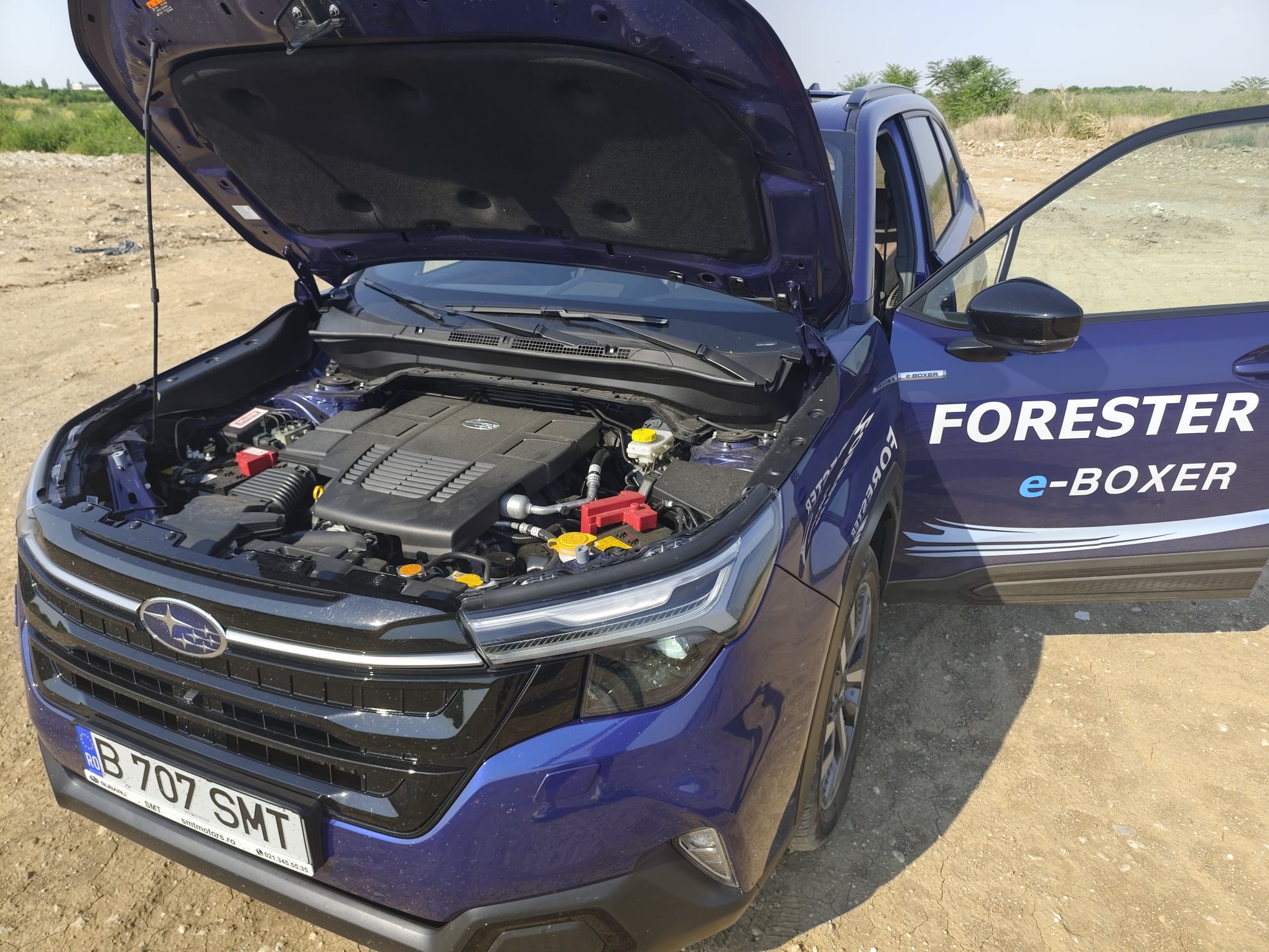 Dincolo de tracțiunea integrală permanentă, nu putem trece peste ceea ce se ascunde sub capota noului Subaru Forester. Aici avem un sistem mild-hybrid e-BOXER, care combină un motor electric de 17 CP și 66 Nm și un propulsor boxer aspirat pe benzină de 2,0 litri, capabil de 136 CP la 5.600 rpm și 182 Nm la 4.000 rpm. Sistemul este conectat la op transmisie de tip CVT cu șapte trepte.