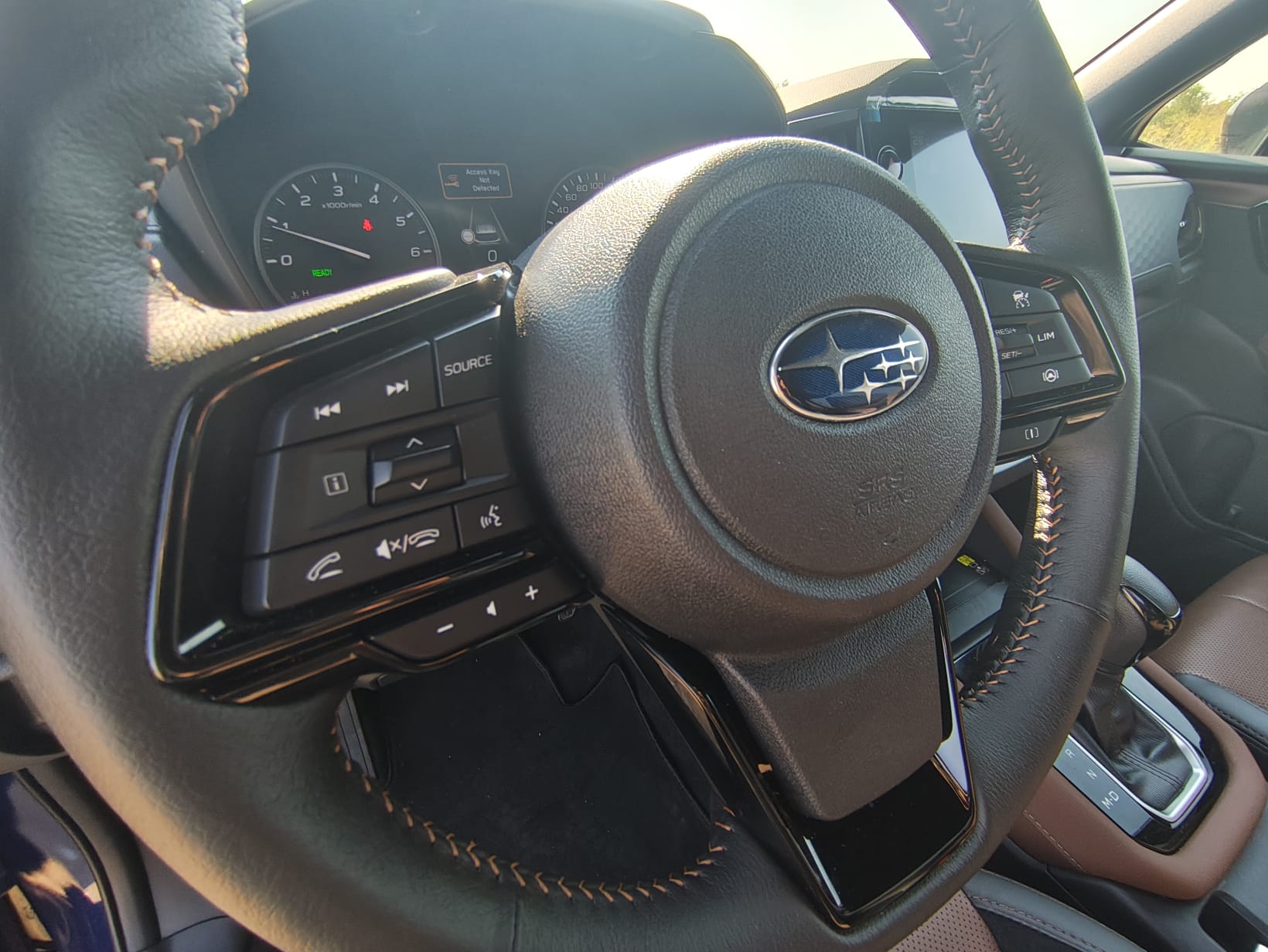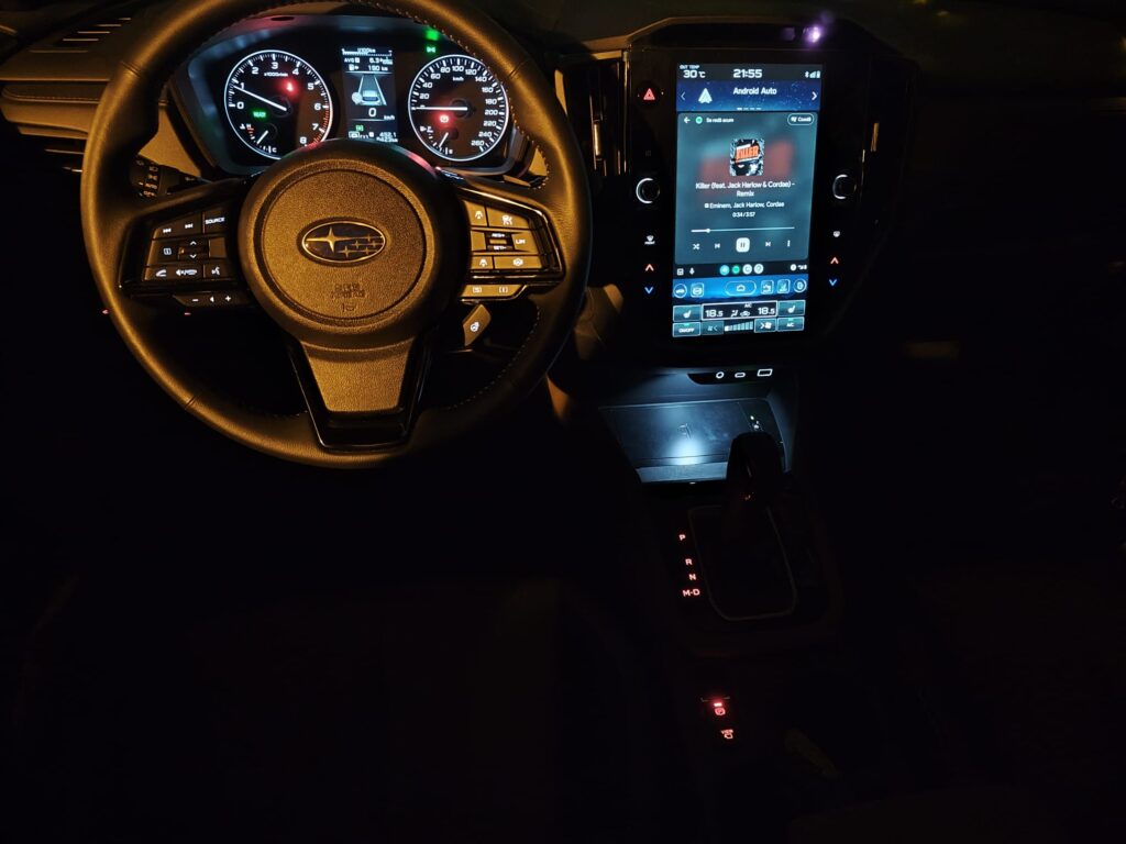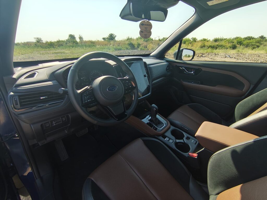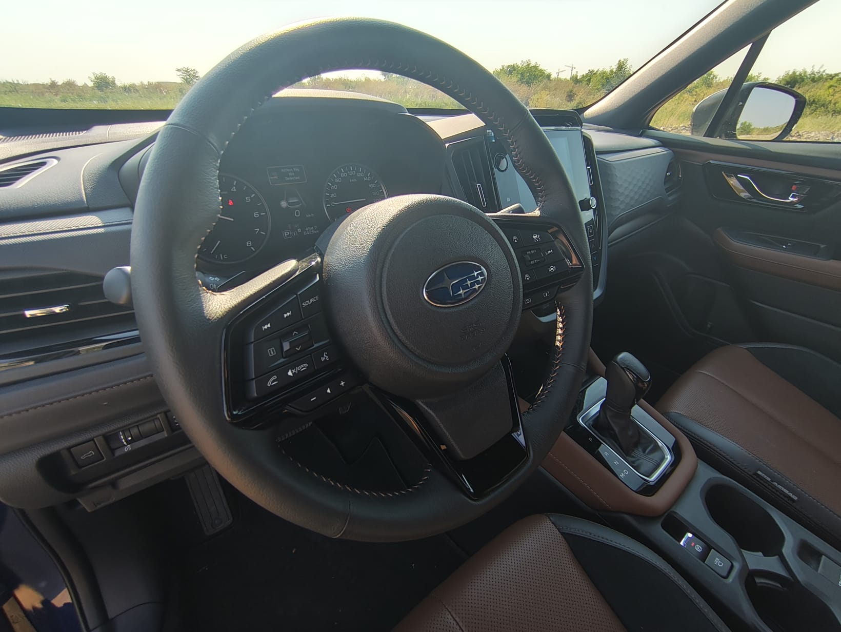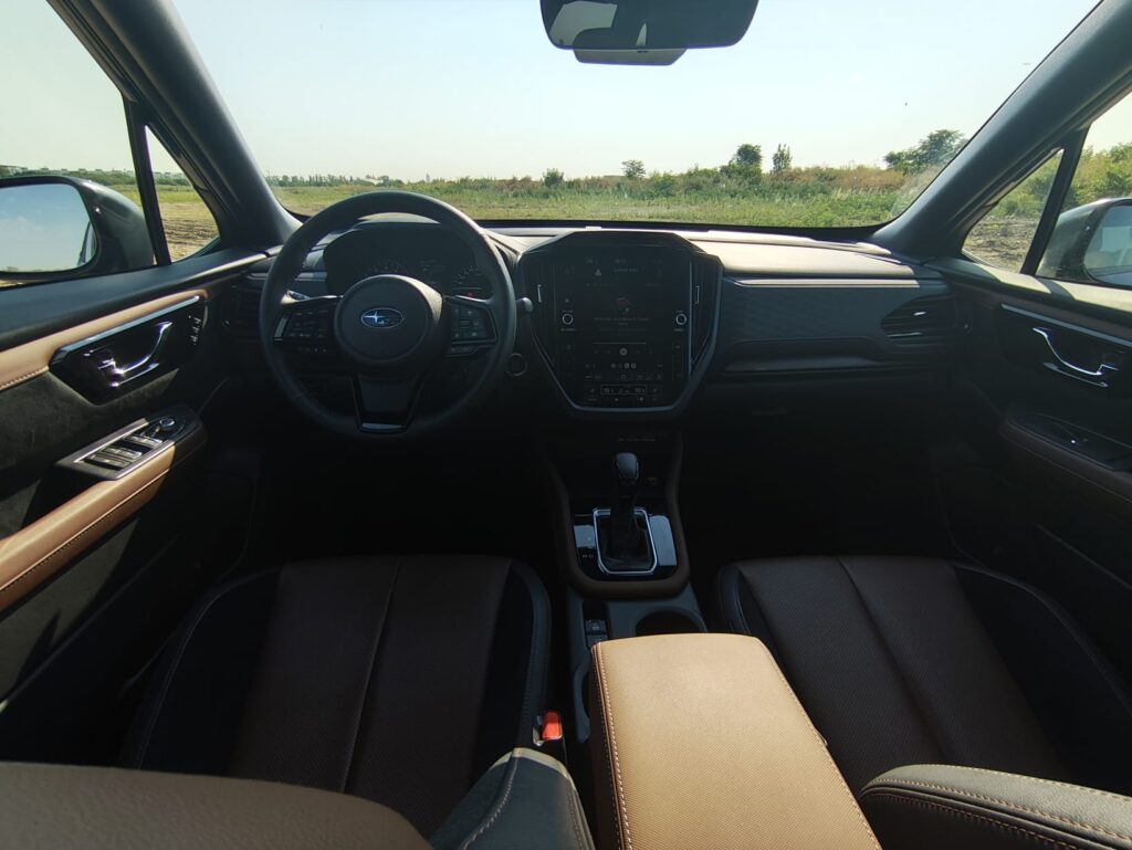 De asemenea, într-o perioadă în care digitalizarea tinde să elimine comenzile fizice, Subaru păstrează funcțiile principale pe cadrane și butoane clare, ușor de identificat și de utilizat, inclusiv pentru reglarea temperaturii și pentru dezaburire. De asemenea, există butoane fizice pe volan, grupate ergonomic pe cele două spițe laterlae. Aș spune că această abordare „old school” este mult mai sigură, deoarece șoferul rareori se lasă distras de ceea ce se întâmplă în habitaclu.