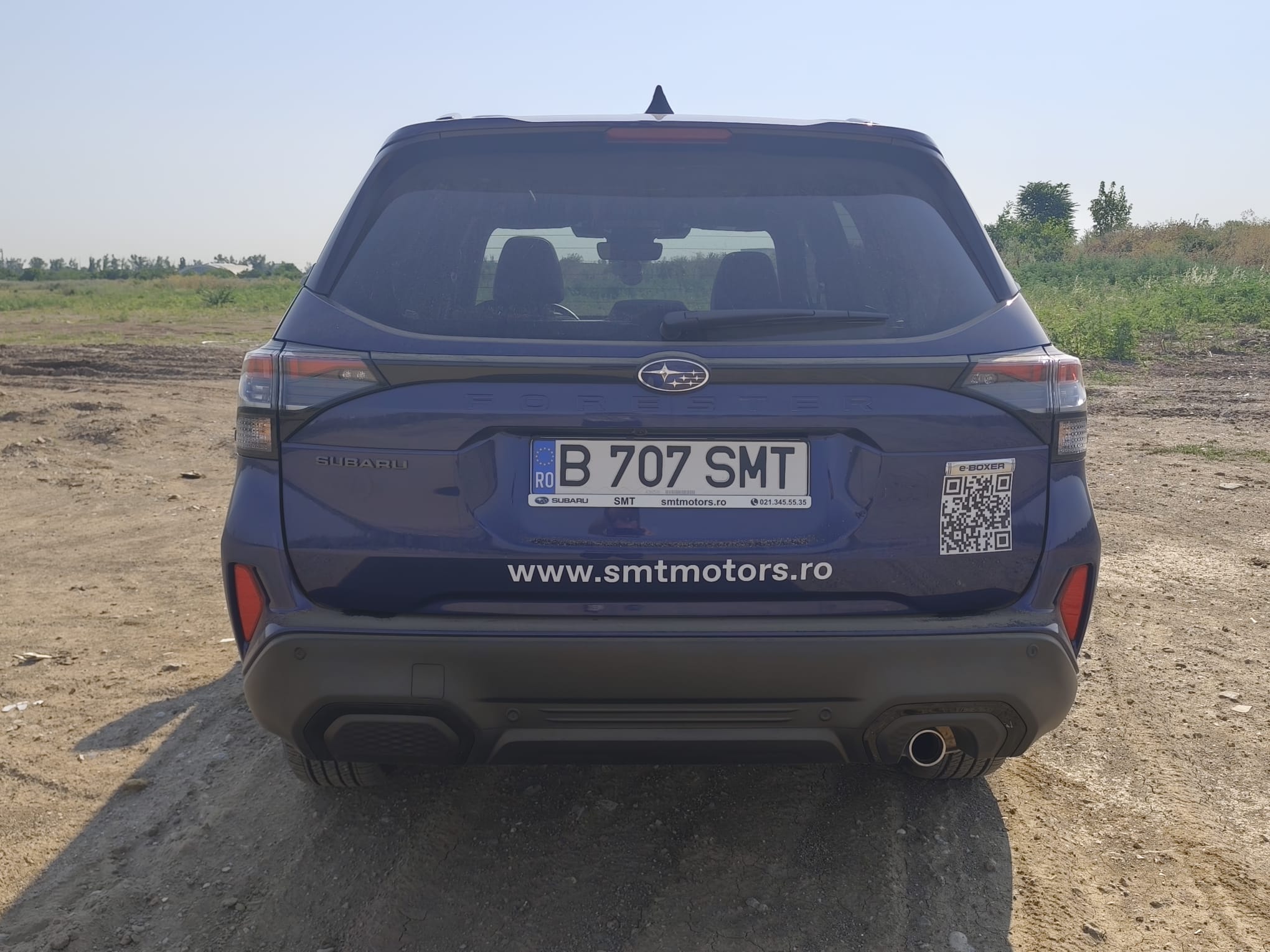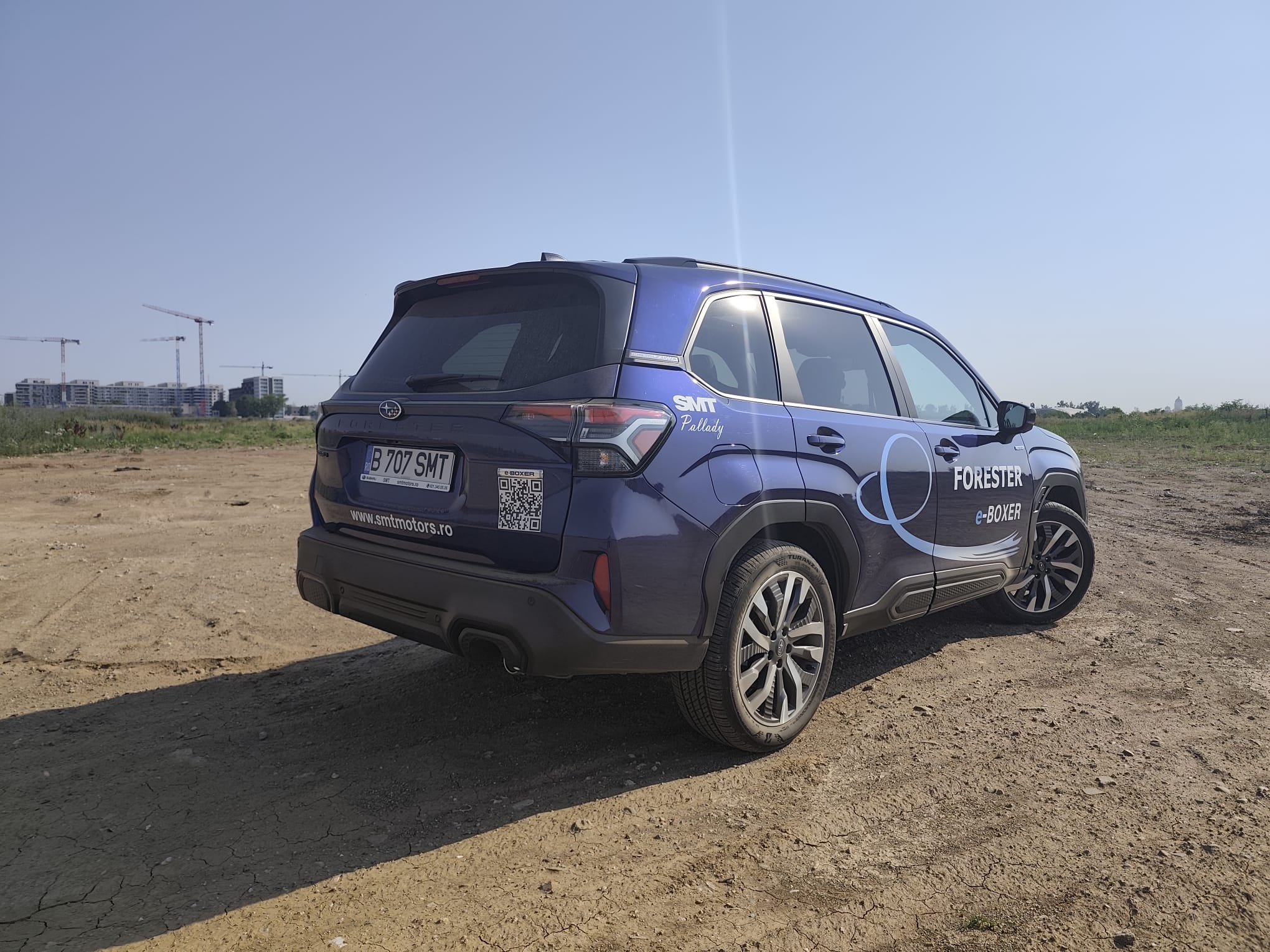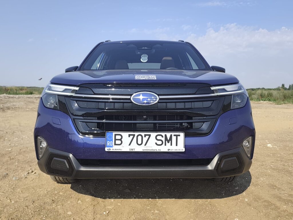 Meritul este în mare parte a sistemului Symmetrical AWD. Acesta transmite constant cuplu ambelor punți, iar în versiunea cu transmisie CVT distribuția este de 60% față și 40% spate. Indiferent dacă urci rampe inegale, traversezi vaduri sau abordezi drumuri forestiere, Forester demonstrează că se simte „acasă” în condiții dure, pe noroi, pietriș sau alte suprafețe dificile. Garda la sol de 220 mm și unghiurile optimizate – atac de 20,4°, rampă de 25,7° și degajare de 21° – îi oferă versatilitate, iar capacitatea de remorcare de până la 1.870 kg îl plasează în zona SUV-urilor din clase superioare.