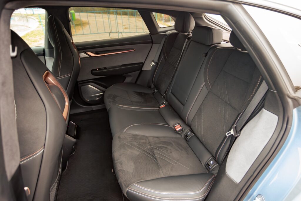 Pasagerii care vor călători pe locurile din spate într-un Zeekr 001 vor aprecia cu adevărat ampatamentul enorm al mașinii, de 3.005 mm, deoarece vor beneficia de un spațiu foarte generos pentru picioare.