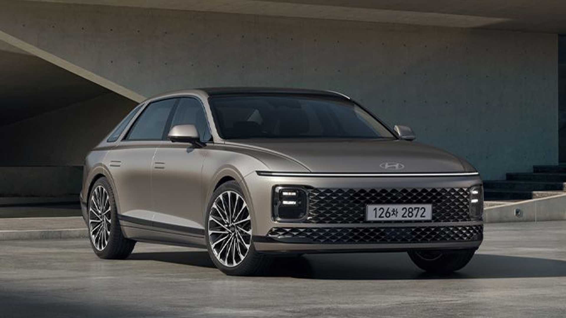 Lansată în 2022, cea de-a șaptea generație primește acum un facelift de mijloc de ciclu. Poziționat în gamă deasupra modelului Sonata, Grandeur primește faruri LED mai subțiri, fără ramă, care sunt amplasate sub o bandă luminoasă orizontală separată pentru luminile de zi. Hyundai susține că a mărit capota pentru a crea un efect de „nas de rechin”.