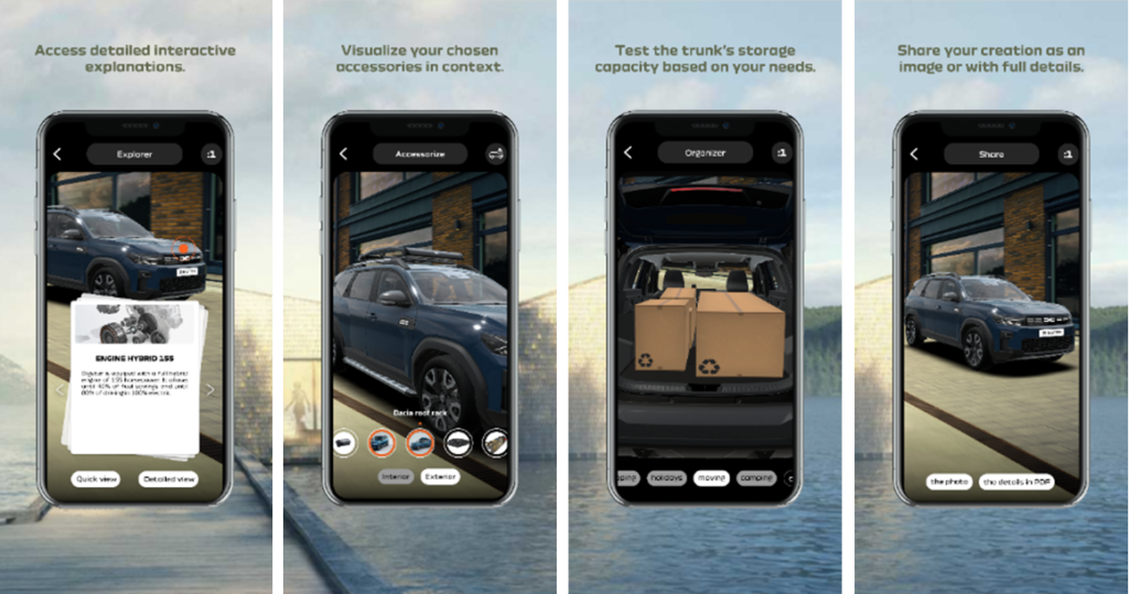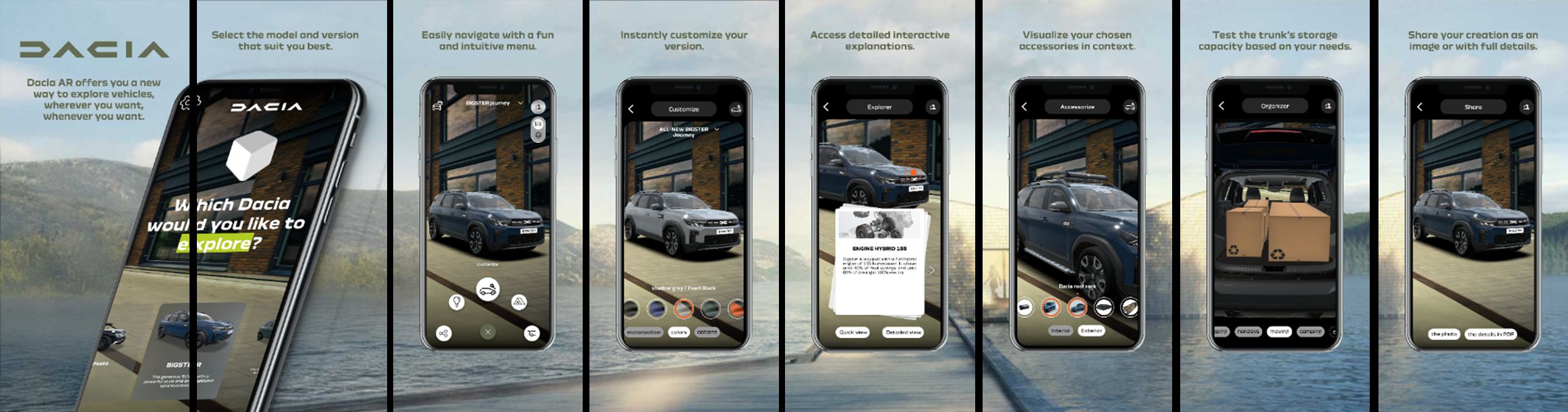 Prin introducerea aplicației Dacia AR pe piața locală, marca de la Mioveni își consolidează strategia de digitalizare a experienței oferite utilizatorilor. Aceasta permite descoperirea tuturor modelelor care sunt disponibile pentru comandă în 17 țări, reflectând diversitatea comercială a mărcii de la Mioveni.
